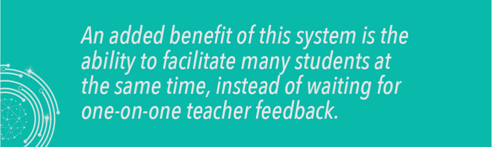 An added benefit of this system is the ability to facilitate many students at the same time, instead of waiting for one-on-one teacher feedback. But this corrective feedback is beneficial to educators as well, assisting them to gain a deeper understanding of their students’ abilities and progress.
