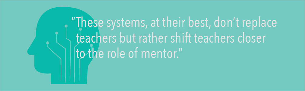 These systems, at their best, don’t replace teachers but rather shift teachers closer to the role of mentor.
