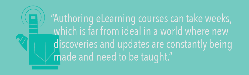 Authoring eLearning courses can take weeks, which is far from ideal in a world where new discoveries and updates are constantly being made and need to be taught.
