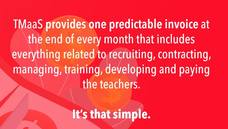 That's it. One, predictable invoice at the end of every month that includes everything related to recruiting, contracting, managing, training, developing and paying the teachers.