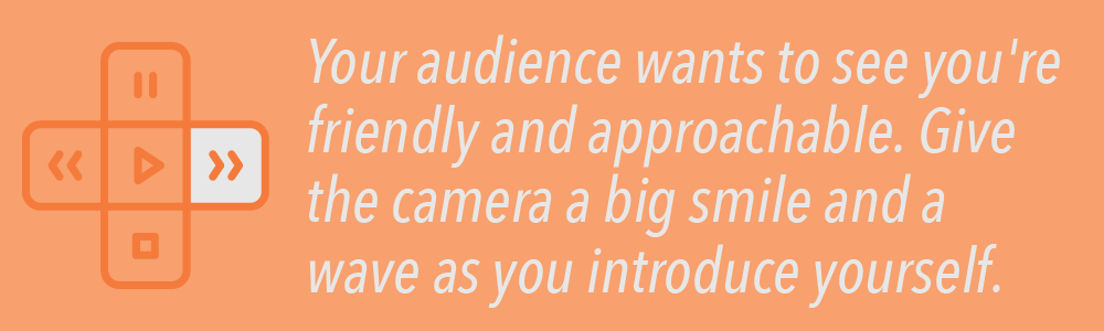 Your audience wants to see you're friendly and approachable. Give the camera a big smile and a wave as you introduce yourself. Explain why you are worth paying attention to.