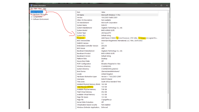 - Installed Physical Memory (RAM): This shows the amount of RAM installed on your computer.